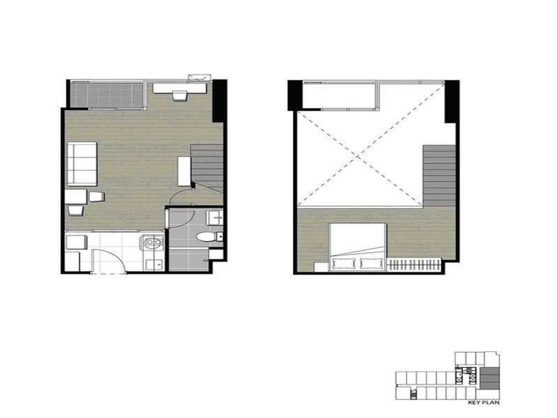 ขายดาวน์ ห้องชุด 2 ชั้น ห้อง 1 Bedroom Duplex , แบบห้อง
